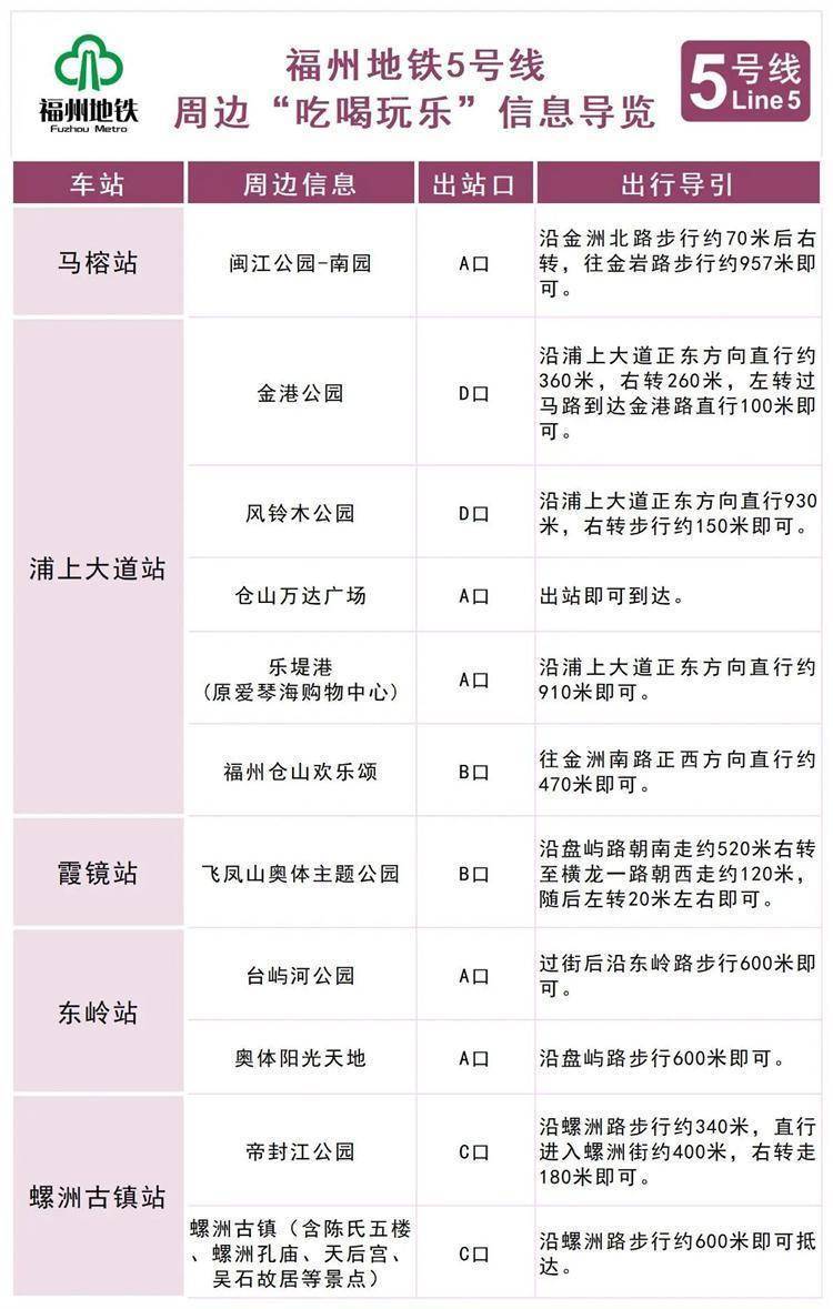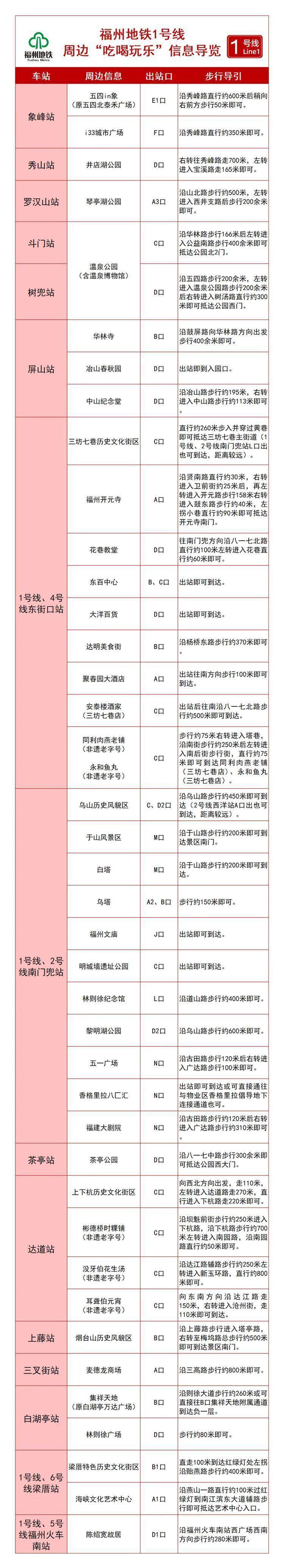 (通讯员 黄伟清 刘舒 记者 刘维斯)福州地铁1、2、4、5、6号线和滨海快线周边"吃喝玩乐"信息导览来了!一起跟着地铁玩转福州吧!